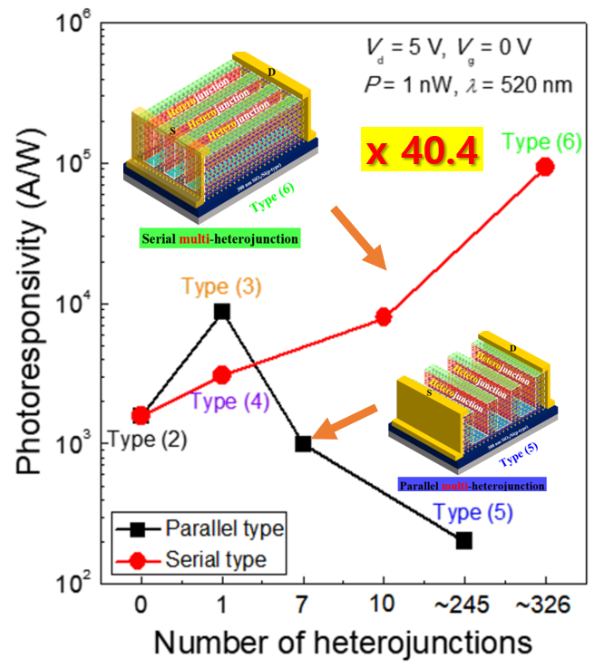 Forming a single-multilayer MoS2 FET by the ALE method not only improves photoresponsivity by a factor of 40 but also decreases the photoresponse time by a factor of 280. Previously, single-multilayer heterojunctions of 2D materials were randomly produced by flake exfoliation/transfer and searching by optical microscopy. Using this ALE technique, a way to fabricate single-multilayer 2D materials junctions at intended locations and on a wafer-scale could be established using multilayer MoS2 layer grown on wafers by CVD or ALD. Further applications of the ALE technique on other 2D materials are currently under way.