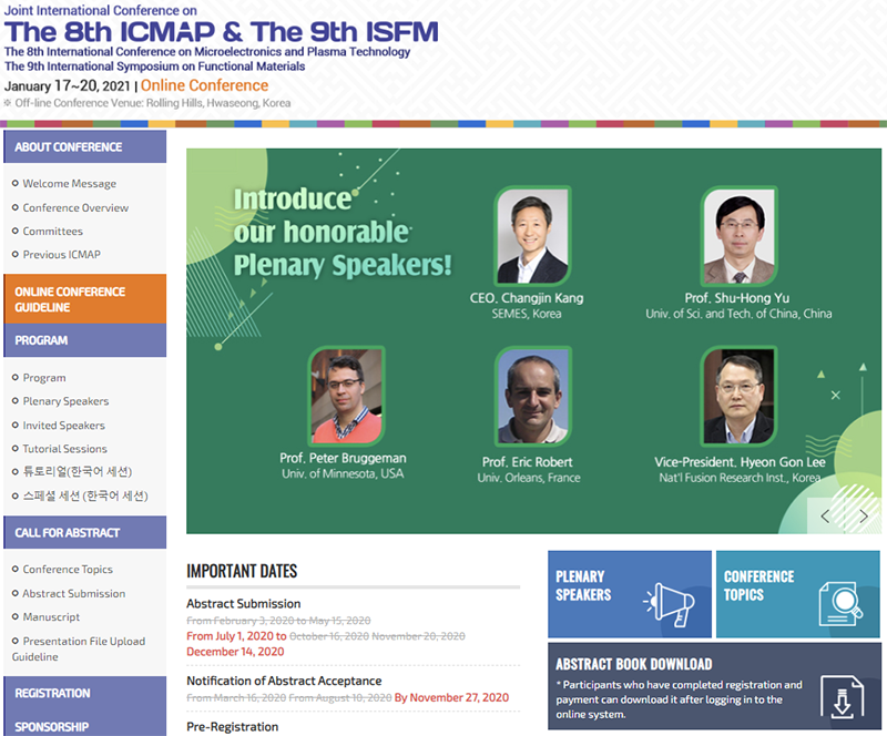 Status Report of the 8th International Conference on Microelectronics and Plasma Technology (ICMAP) Held Online in January 2021 in Korea