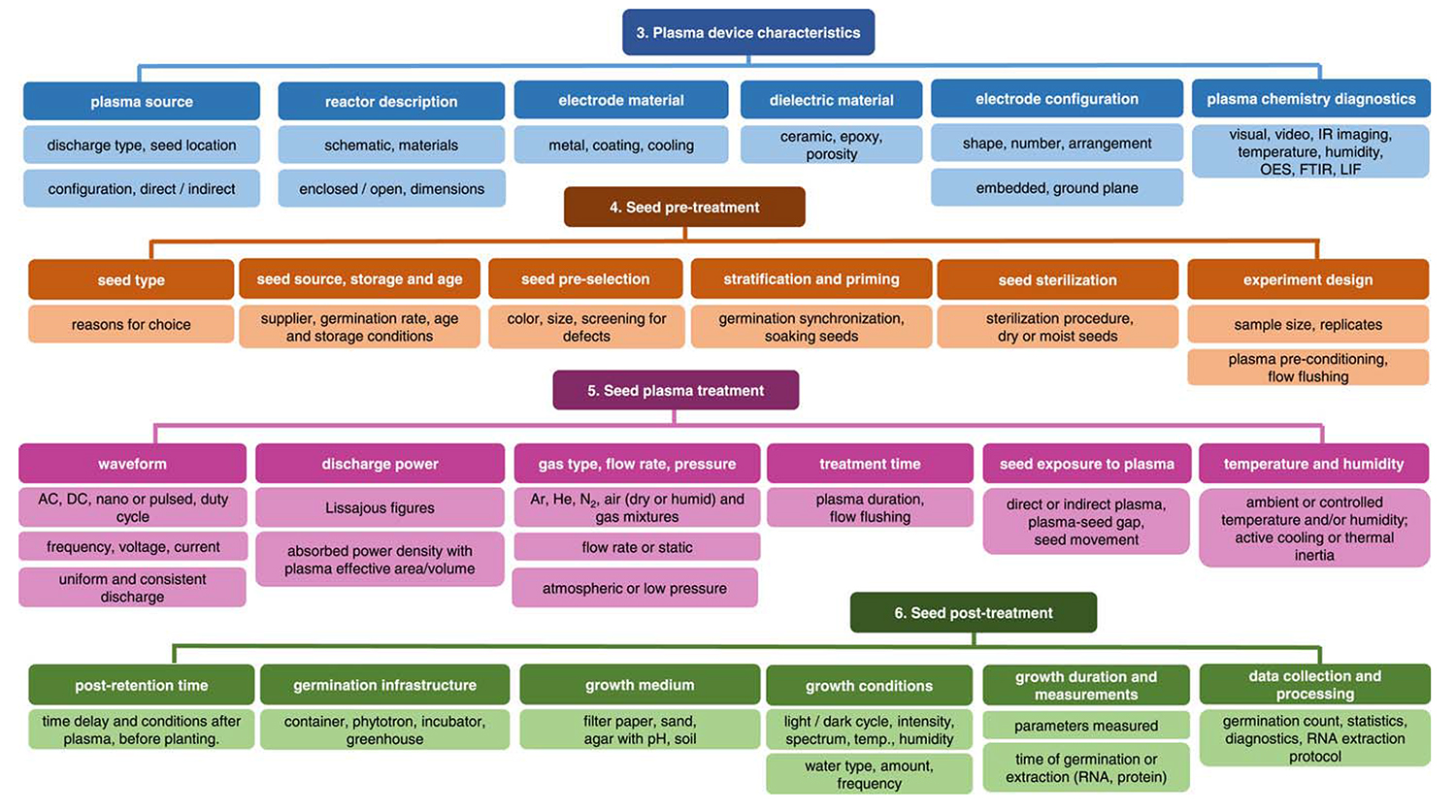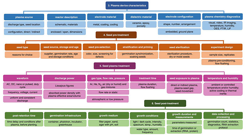 There is sufficient information as a proof-of-concept for biological applications of plasmas even in a young field like plasma agriculture, but a lack of standardization in the methodology prevents a proper evaluation of plasma treatment on seeds. It would be helpful to coordinate research efforts by establishing a common protocol. Therefore, this recently published review presents the parameters used in the seed preparation, the plasma treatment of the seed, and the seed posttreatment, all inspired by personal experience of trial and error. This summary of the plasma and biological parameters is intended to raise awareness about questions that need to be addressed to properly record protocol details and reproduce results for the plasma treatment of seeds.