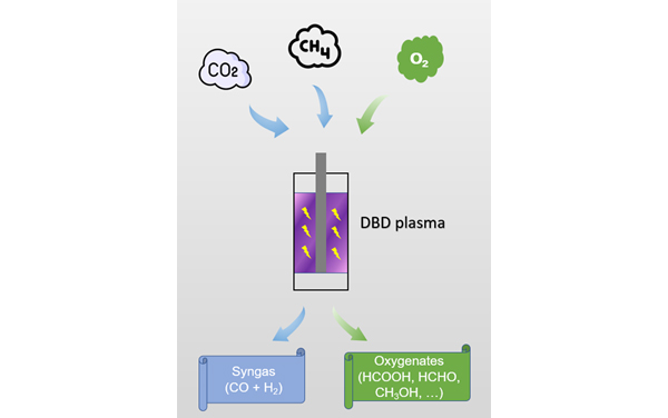 Plasma-based dry reforming of methane (DRM) into high value-added oxygenates is an appealing approach to enable otherwise thermodynamically unfavorable chemical reactions at ambient pressure and near room temperature. However, it suffers from coke deposition due to the deep decomposition of CH4. In this work, we assess the DRM performance upon O2 addition, as well as varying temperature, CO2/CH4 ratio, discharge power and gas residence time, for optimizing oxygenates production. By add-ing O2, the main products can be shifted from syngas (CO + H2) towards oxygenates. Chemical kinetics modelling shows that the improved oxygenates production is due to the increased concentration of oxygen-containing radicals, e.g., O, OH and HO2, formed by electron impact dissociation (e + O2 → e + O + O/O(1D)) and subsequent reactions with H atoms. Our study reveals the crucial role of oxygen-coupling in DRM aimed at oxygenates, providing practical solutions to suppress carbon deposition, and at the same time enhance the oxygenates production in plasma-assisted DRM.